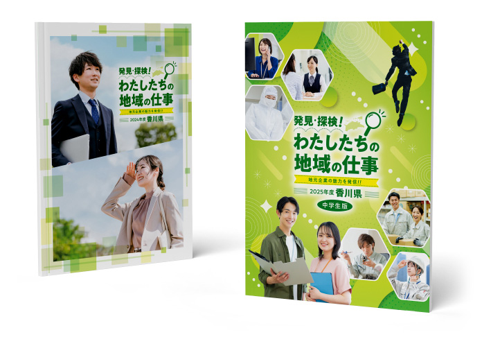 地域の学校教育への貢献、香川県内の人材不足解決のために、香川県教育委員会の後援をいただき、毎年、香川県内全ての中学2年生と高校2年生の方に冊子を配布しています。